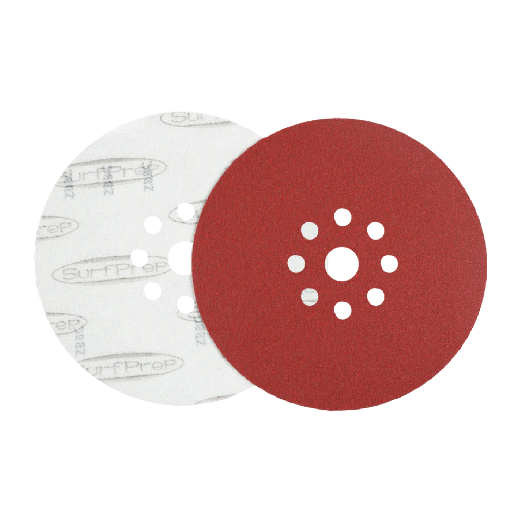 9″ Paper Discs with Hook and Loop Backing; available in 9 hole pattern and 3″ centre hole